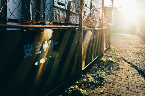 日が暮れるくらいまで用を足してて、それでも陽がまだギリギリあったので撮った今日の一枚。なんか照らされる安全第一が目に止まって。