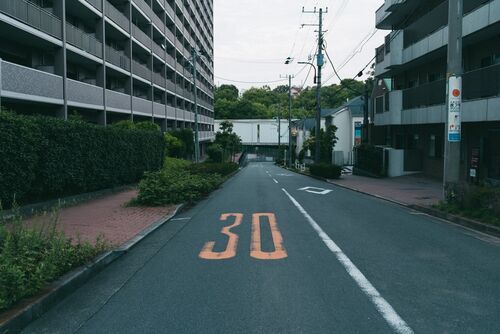 昨日に続き朝方の写真。 相変わらず道路標識が目につき撮った1枚なんだけど、まだ太陽も登ってない薄暗い中、しっかりと主張する30という文字に、ちゃんと見える工夫がされてるんだななんて感心したりした。 まぁ白文字でも見えるけどより際立ってはいるよね…